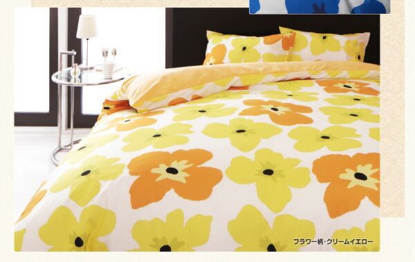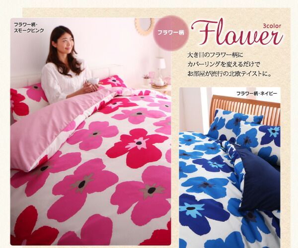 大き目のフラワー柄にカバーリングを変えるだけでお部屋が流行の北欧テイストに。