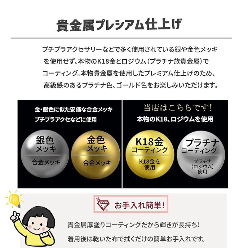 金属アレルギー対応: ピアスの耳穴に当たる部分はシルバー925製で、一般的なアクセサリーとは異なる二重メッキ加工が施されており、独特の光沢と耐久性、変色しにくさを備えています。