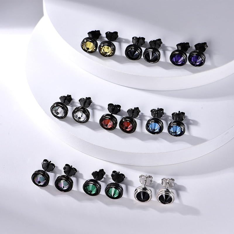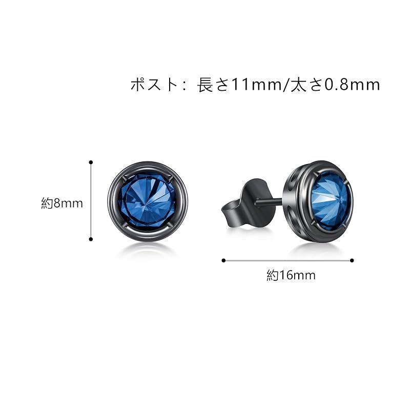 商品仕様:2個入。ピアスサイズ:(横)8 mm×(縦)8 mm。ポストの長さ約 11 mm,太さ0.8 mm。素材:合成サファイア 。付属品:精美な包装ケース