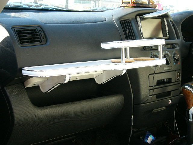 サクシード/プロボックス(02/7~)フロントテーブル ブラックウッド BKxフルメッキ 携帯中