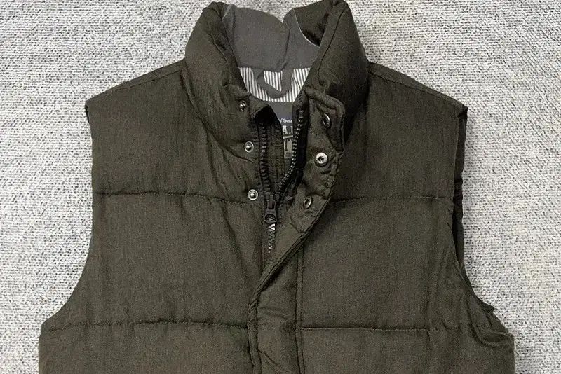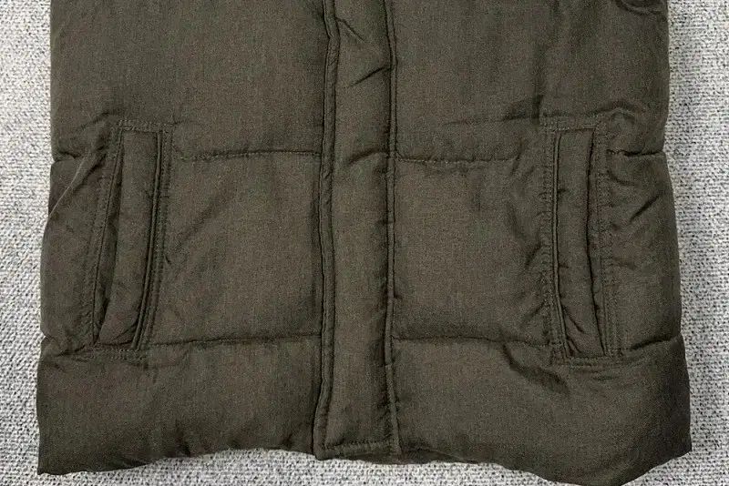 ・このダウンベストはポリ(ポリエステル)100%素材で製作された、カーキ カラーです。? 軽くて適度な保温性を提供します。