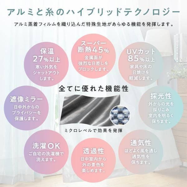 商品名:レースカーテン 約幅150×丈176cm シルバー 2枚組 洗える 遮像ミラー 断熱 保温 UVカット エコファイン ティエラ