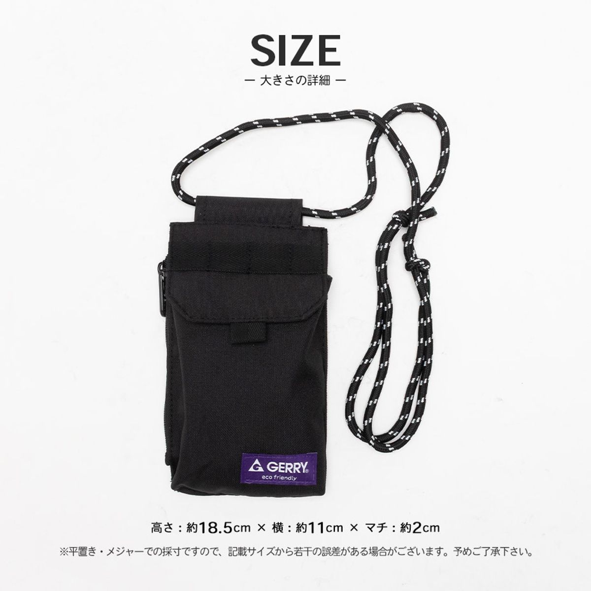 H:約18.5cm / W:約11cm / D:約2cm / ショルダーストラップ:~135cm / 重量:約75g