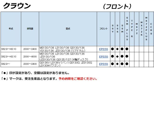 【適合表を参照のうえ、該当品番を指定して下さい。】
