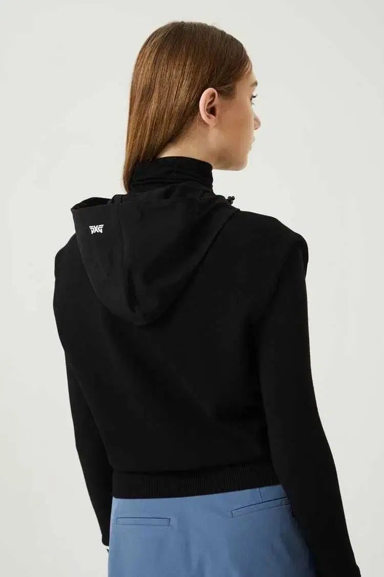 PXG レディース ブラック WHO ニート ベストです。スタイリッシュなデザインに全 PXG ロゴがPOINT ポイントで入っています。ニート素材で高級感を加え、WHO が付いており活用度が高いです。