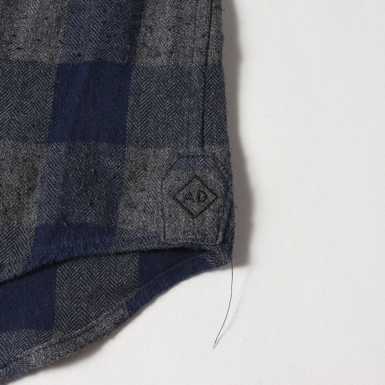 起毛感のあるブロックチェック柄のヘリンボーン生地で仕上げたボタンダウンシャツになります。