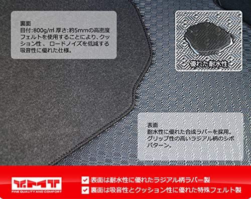 ・裏面 目付:800g/平方メートル 厚さ:約5mmの高密度 フェルトを使用することにより、クッ ション性、ロードノイズを低減する 吸音性に優れた仕様。