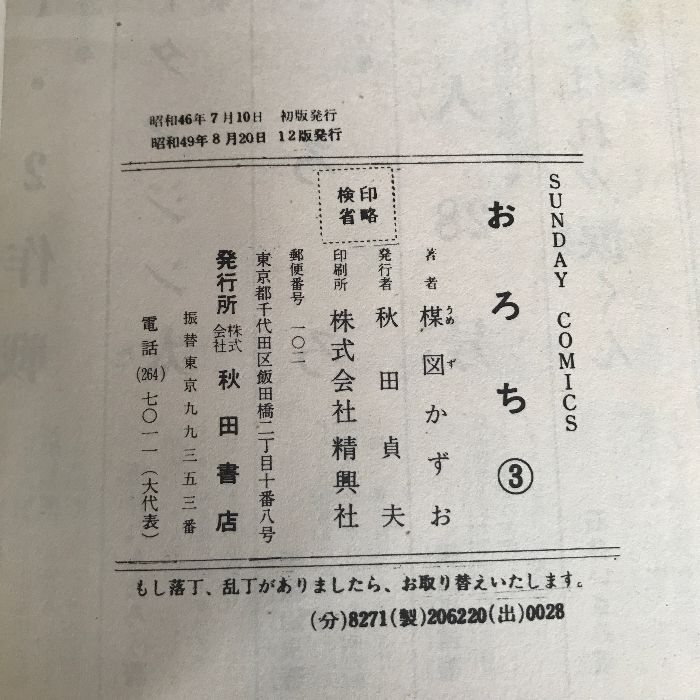 おろち 3 サンデーコミックス 怪奇COMICS 秋田書店 楳図 かずお