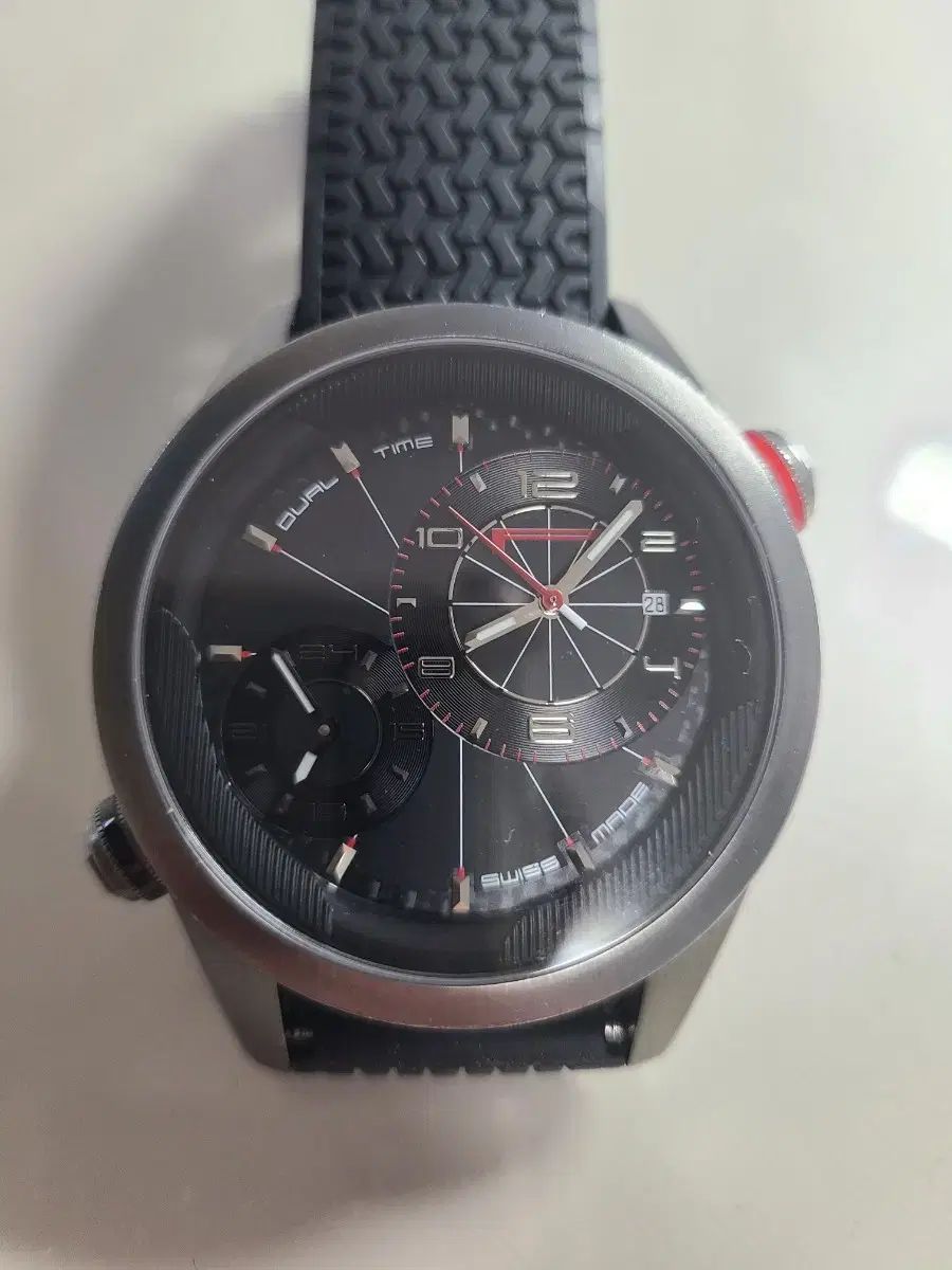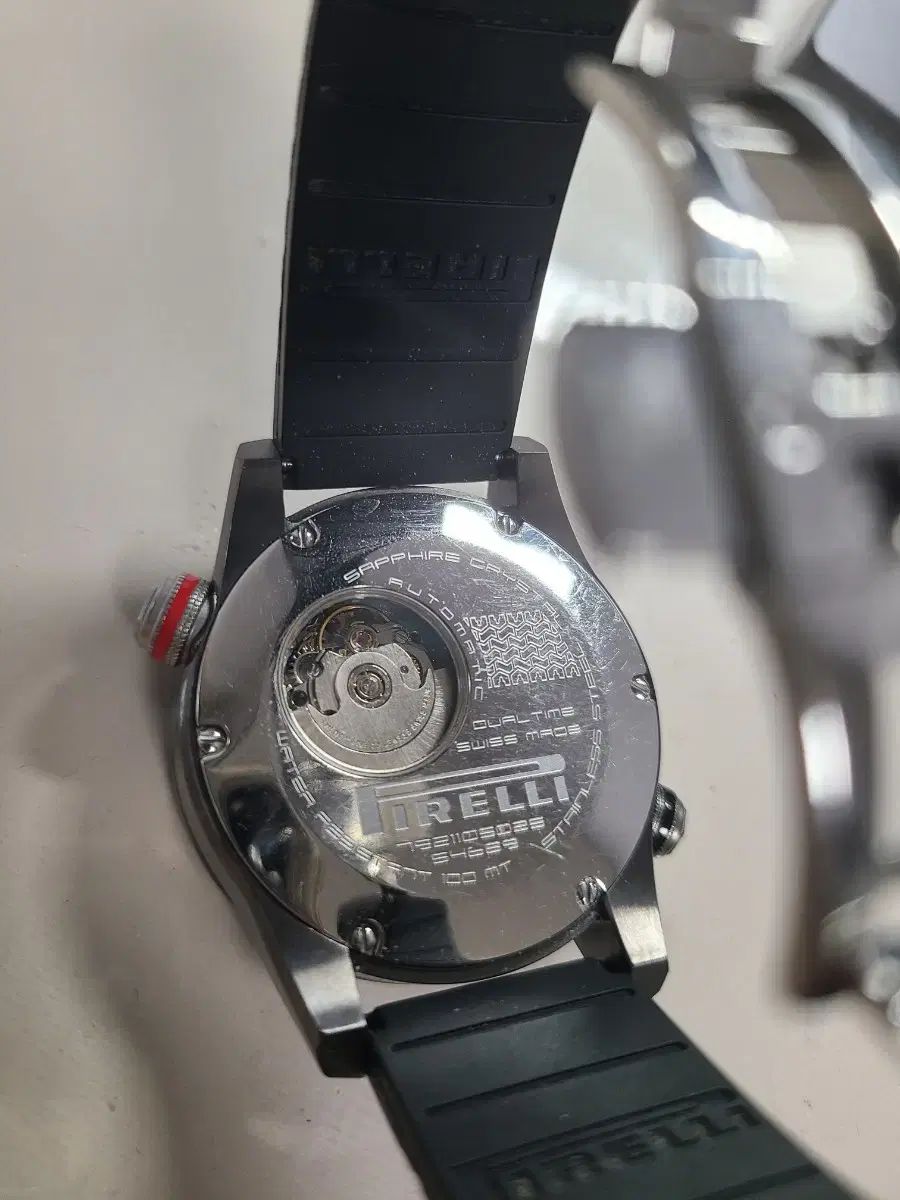 スイス、ピレリ社のデュアルタイム オートマティック時計です。ラバー ストラップでスポーティーさをプラスしました。