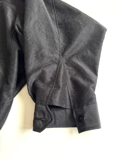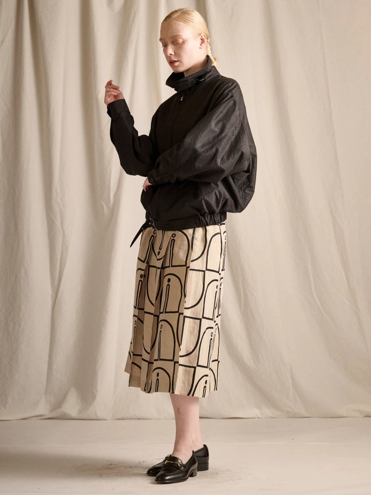 裾はゴムシャーリング仕様のバックルベルトで調整できる様デザインしています。