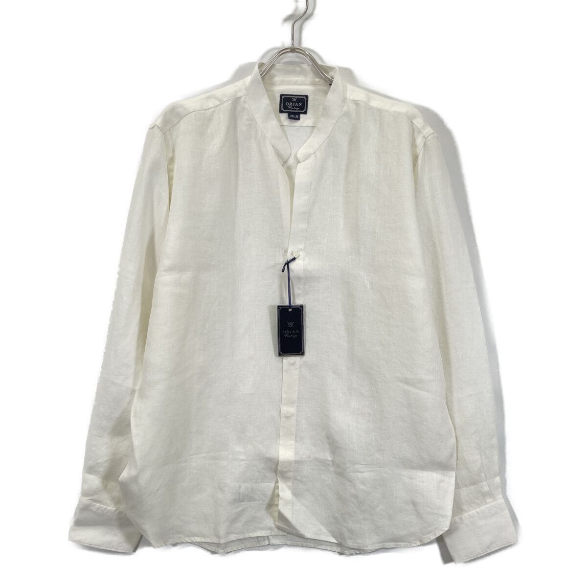 タイプ)KF99F ホワイト リネン 製品洗い バンドカラー ロングスリーブシャツ