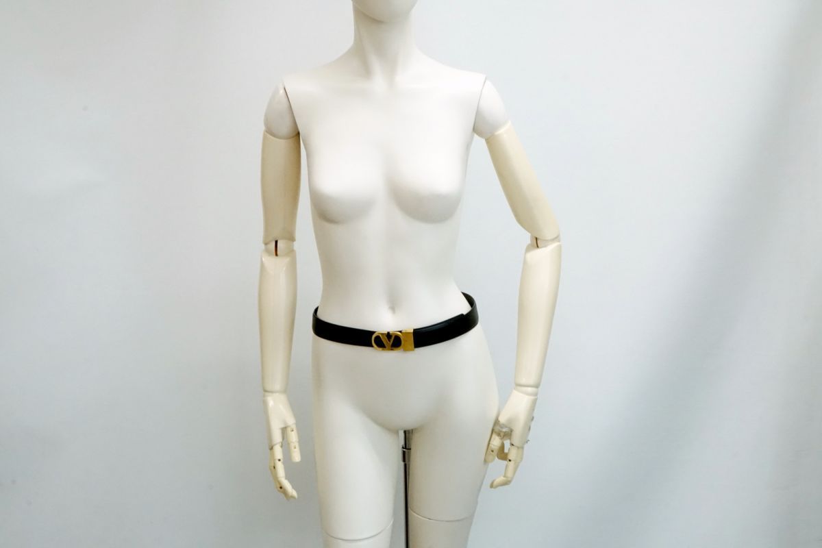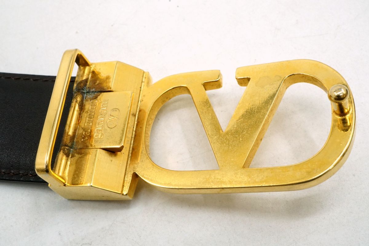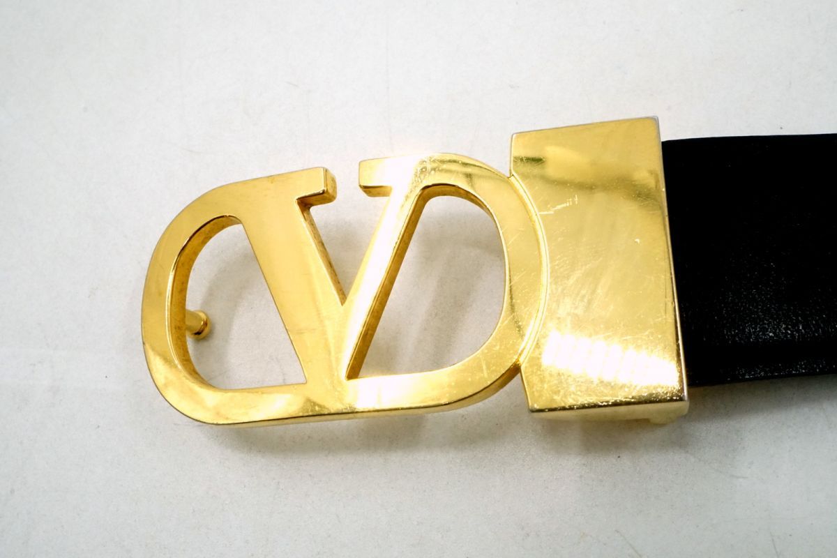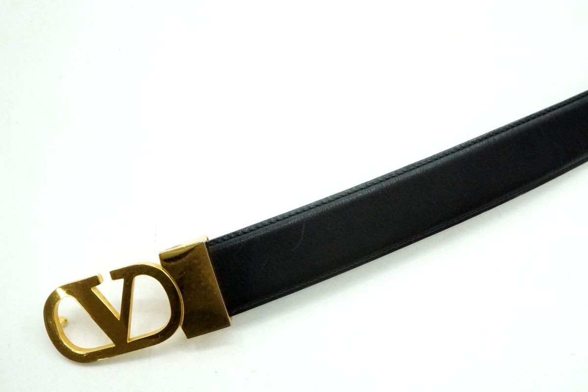 ヴァレンティノ ガラヴァーニ ヴィンテージ リバーシブル ベルト Vロゴバックル Unisex メンズ レザー 黒 ブラック VALENTINO 5023k
