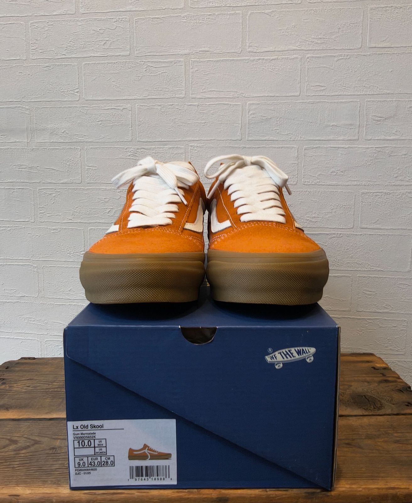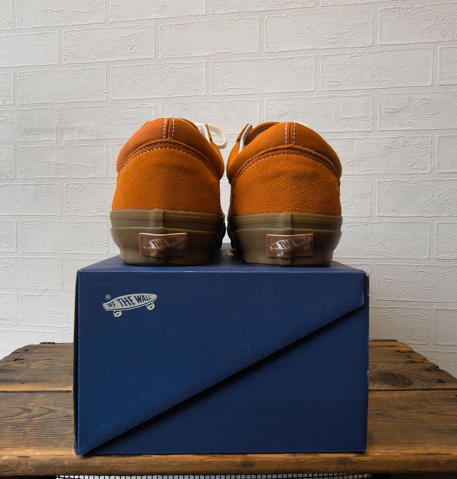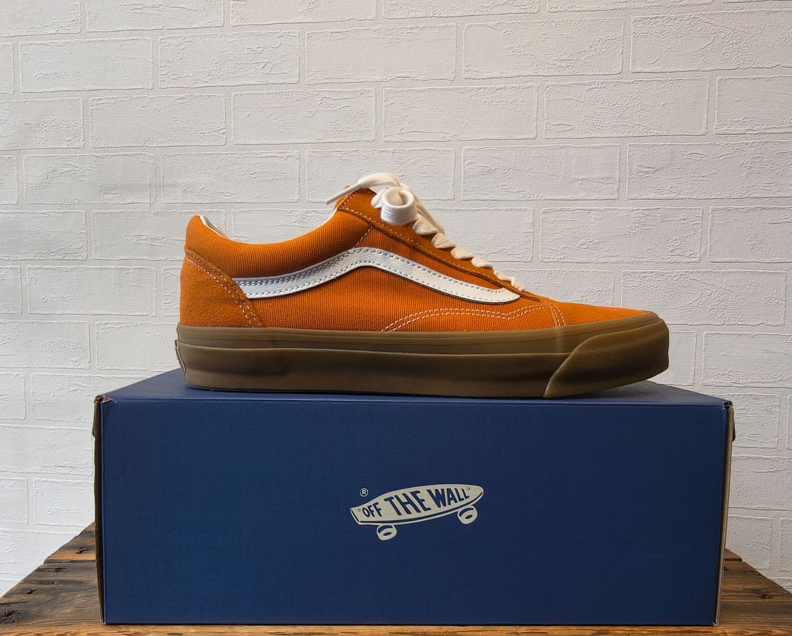 オレンジでも少しくすんだようなカラーに白ラインで、ソールはガムソールといった珍しいデザイン