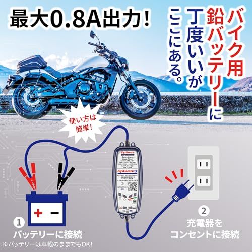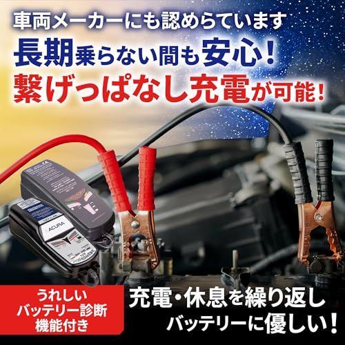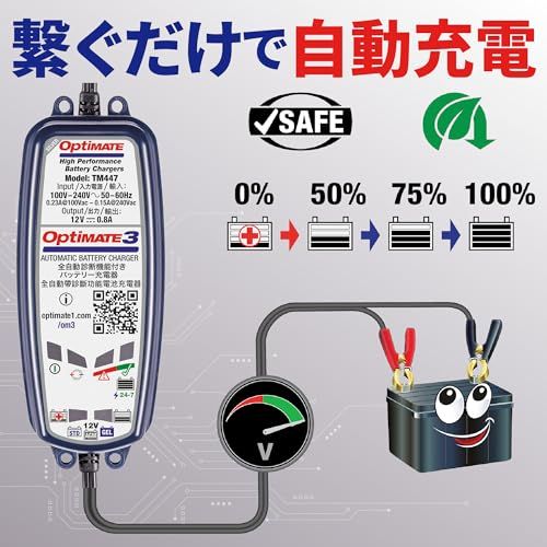 充電終了後は自動でメンテナンスモードになるので、繋げっぱなしでも、過充電・過放電の心配がありません。