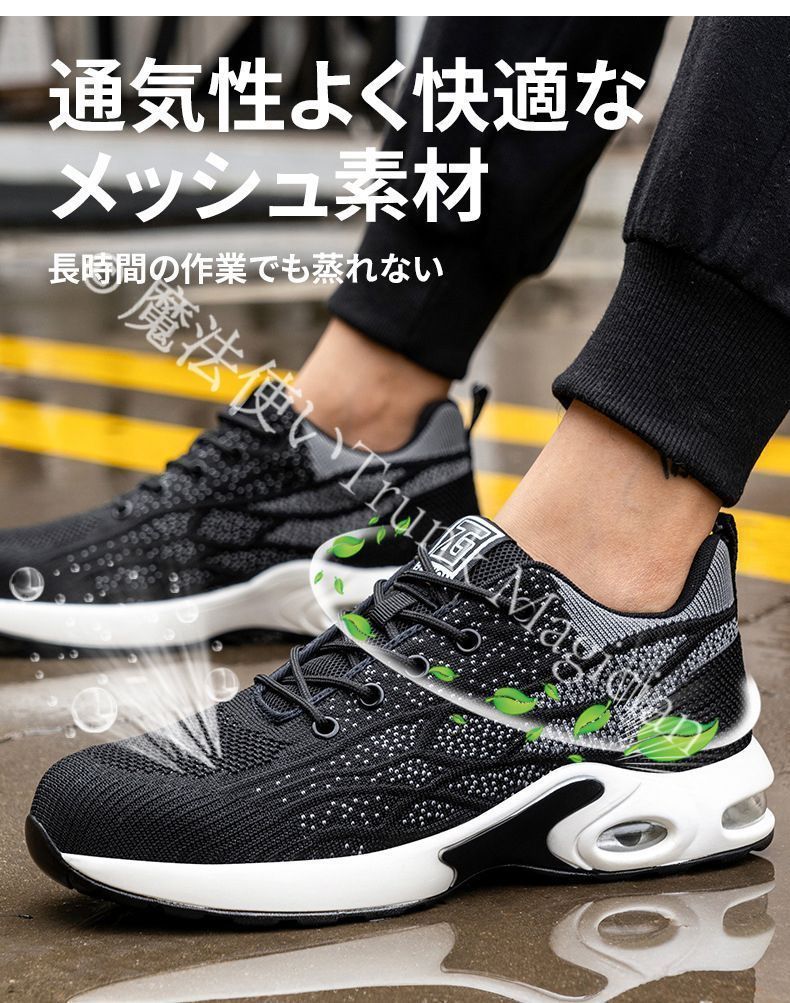 メンズ 作業靴 レディース安全靴 スニーカー エアクッション 鋼先芯 滑らない 刺す叩く防止 ワークシューズ 男女兼用 軽量 耐磨耗 衝撃吸収 耐滑ソール 作業用靴 おしゃれ セフティーシューズ 安全スニーカー アークシューズ つま先ガード 靴 歩きやすい 疲れない 滑り止め 防滑gaomi09