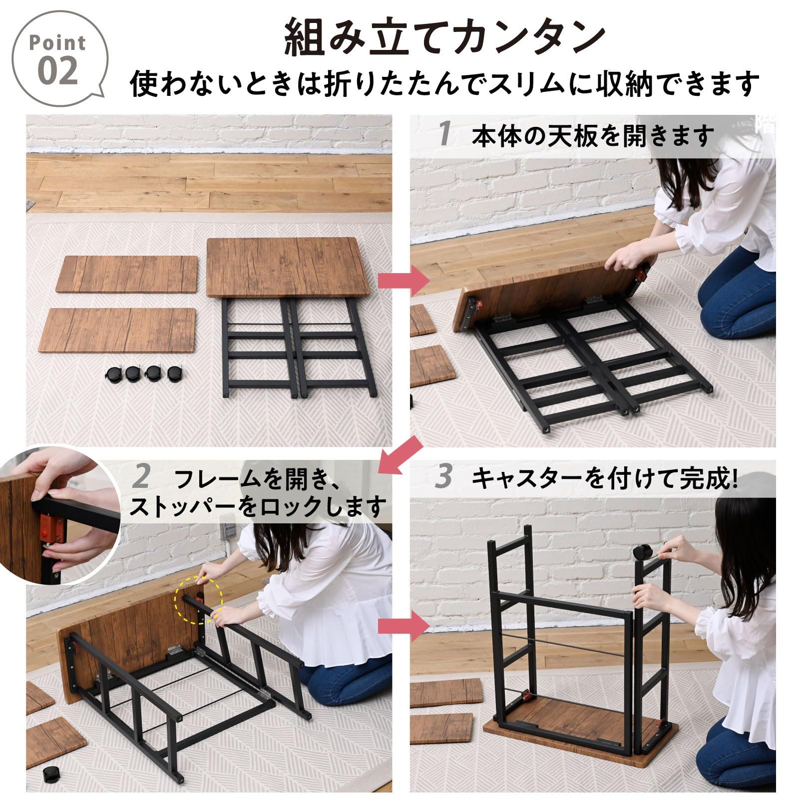 【組立カンタン】本体を開いてロックし、キャスターを取り付けるだけで完成するので届いてすぐにお使いいただけます。