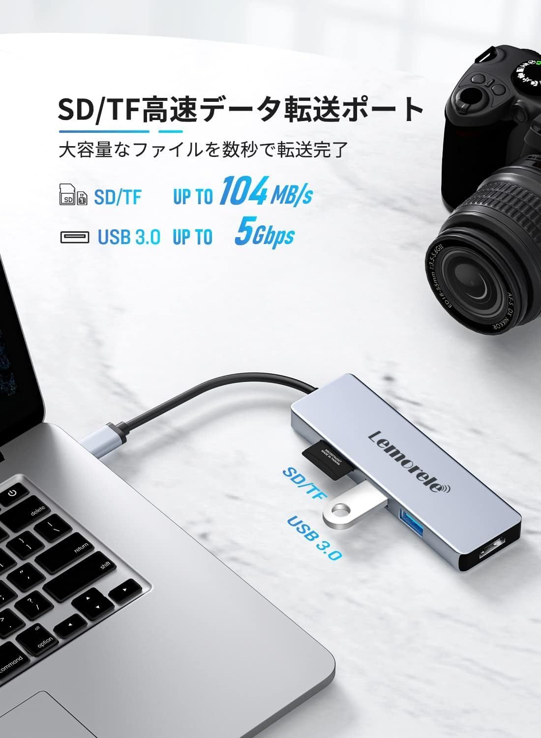 • 【TF/SDカード同時読み取り対応】プロカメラマンや動画クリエイター必携のデュアルカードリーダー機能。SDカードとMicroSD(TF)カードを同時挿入可能で、デジタル一眼の高解像度写真からドローン空撮映像まで、MacBook AirやウルトラブックなどのスリムPCでも直接読み込み可能。