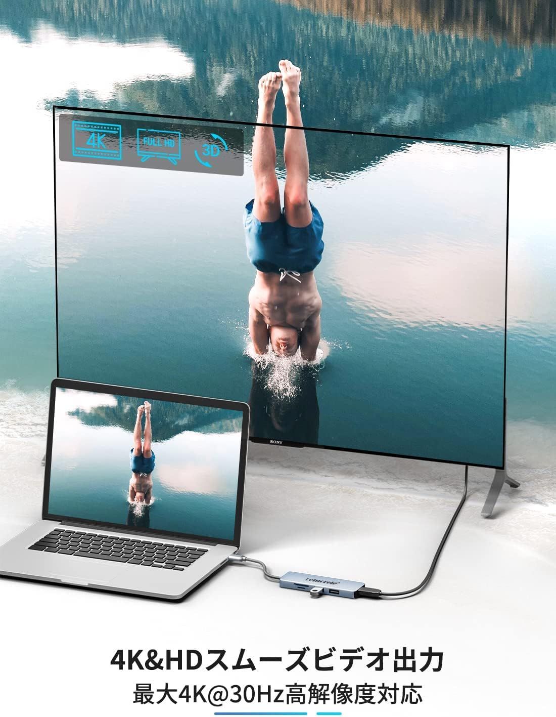 • 【4K HDMI高解像度出力】最新のHDMI 2.0技術を搭載したUSBハブは、4K@30Hz/フルHD 60Hzの高精細映像出力を実現。大画面テレビやプロジェクターに接続すれば、NetflixやYouTubeのストリーミングコンテンツからゲームプレイまで、映画館さながらの没入感あふれる映像体験をお楽しみいただけます。