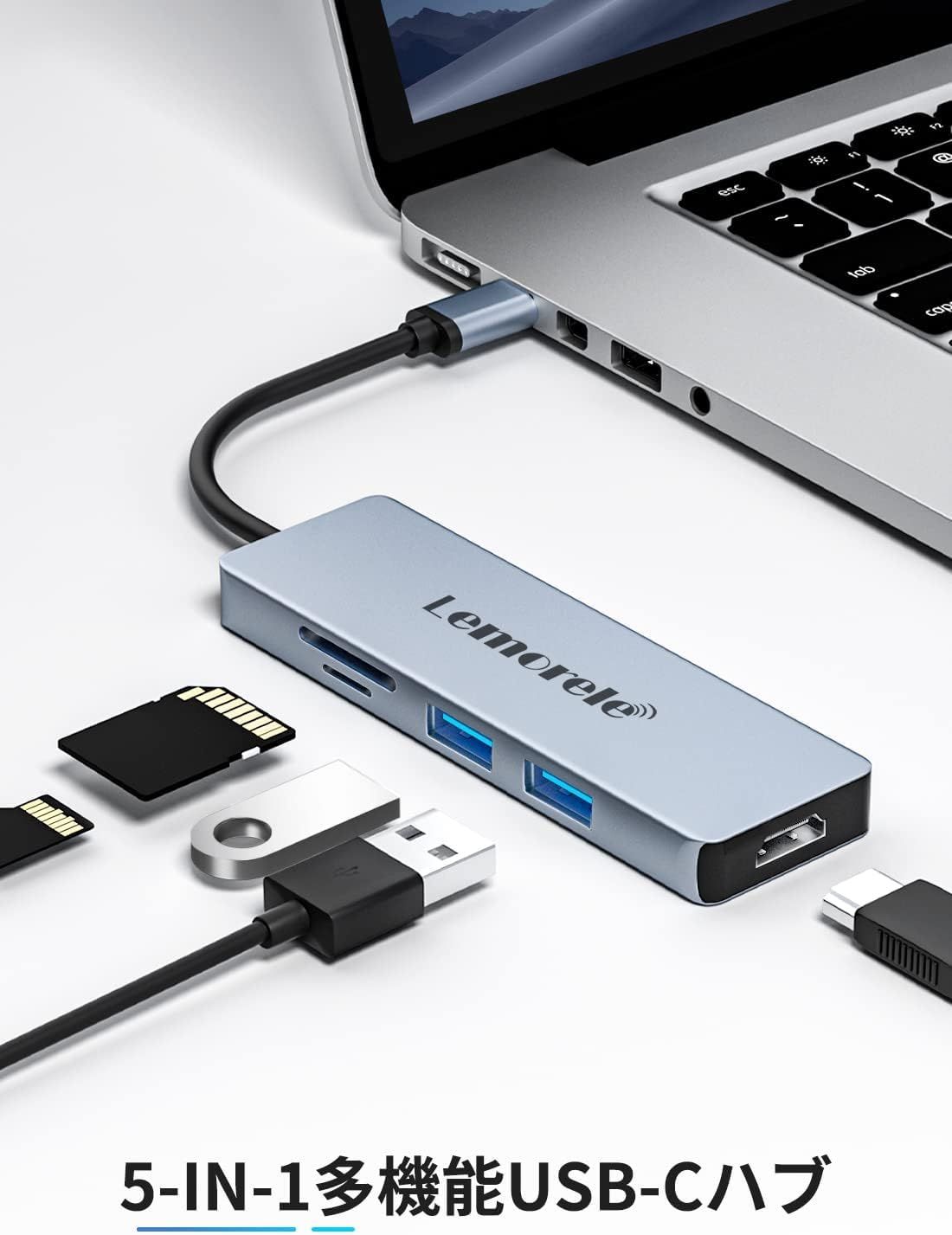 • 【Type-C 5in1多機能ハブ】コンパクトなボディに高機能を凝縮。2つのUSB 2.0ポートでマウスやキーボードなどの周辺機器を同時接続可能。HDMI 2.0ポート(4K@30Hz対応)なら、会議資料や動画コンテンツを大画面でクリアに表示。さらにSDカードスロットとTFカードスロットを内蔵し、カメラの写真データやドローンの動画を素早く転送。ノートパソコンやタブレットの拡張として、ビジネスからエンターテインメントまで、あらゆるシーンで活躍する万能ハブです。