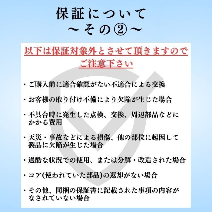 ・リビルト商品はコア(使われていた商品)のご返却が必要です。