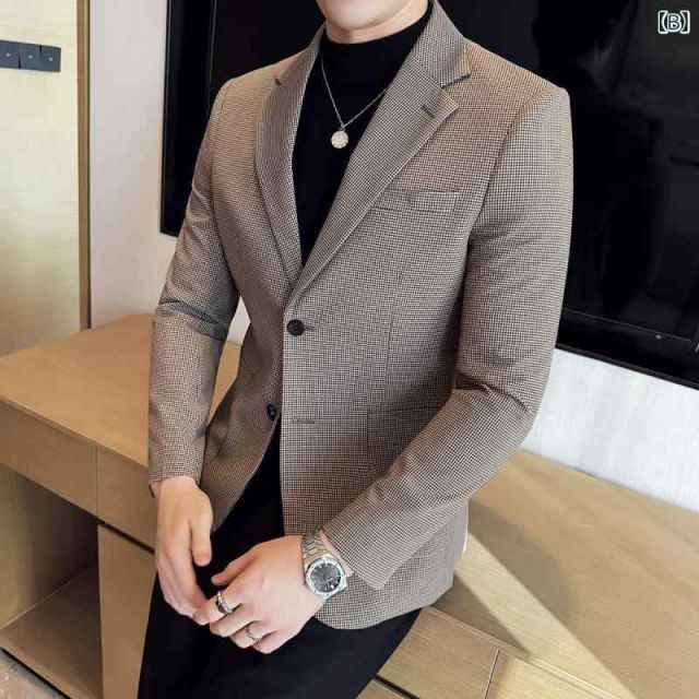 商品名:[3XL]春 コーデ メンズ 服 シンプル ファッション オシャレ 大人 かっこいい 大きいサイズ ストリート 紳士服 千鳥格子 スーツ ジャケット スリム ビジネス カジュアル トップス