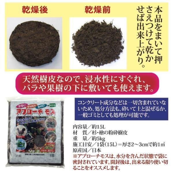天然樹皮を主原料とし、除草後の土の上に敷き詰めると、乾燥して固まり、整地された土のようになります。