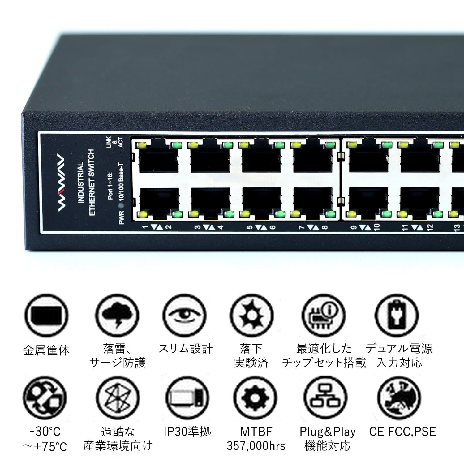 設定不要、省エネ、ファンレス静音設計、通風孔レス構造、業務・産業・オフィス向け。