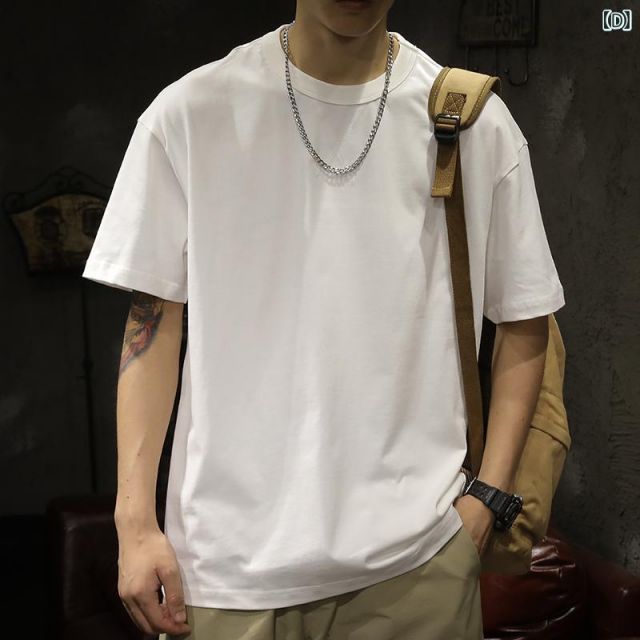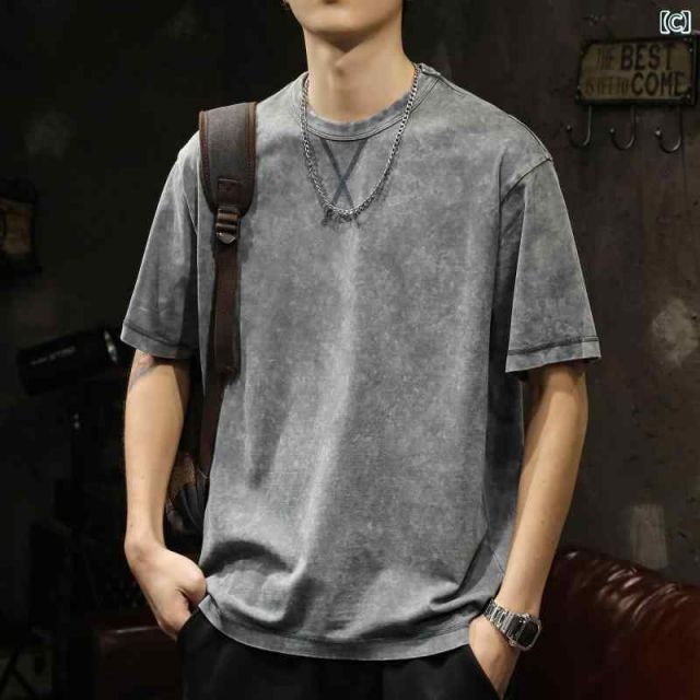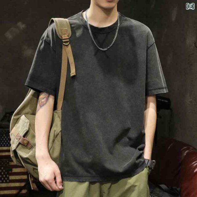 商品名:[L 【65-75】]メンズ 男性用 ファッション オシャレ シンプル 大人 かっこいい ストリート ヒップホップ HipHop アメリカンン ヘビーウェイト 半袖 夏 イン ルーズ 大きいサイズ ラウンドネック ボトム シャツ ウォッシュ ピュアコットン T