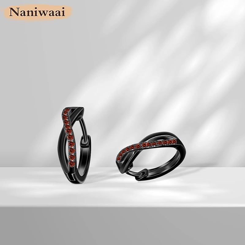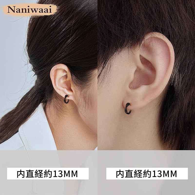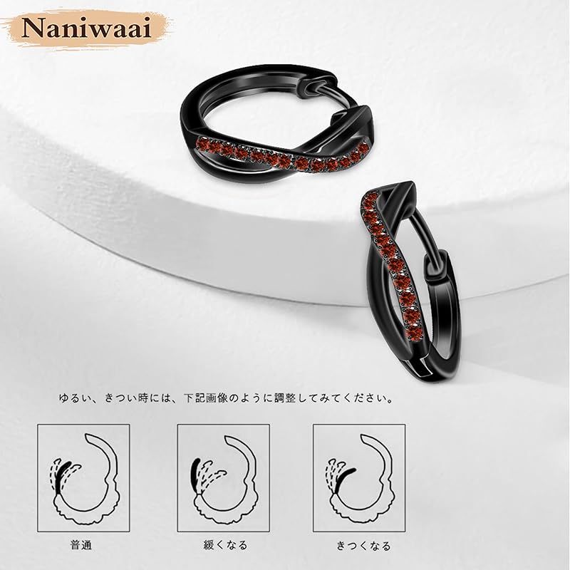 商品名:Naniwaai ピアス レディース 人気 ツイスト つけっぱなし カップル フープピアス シルバー リング ブラック シンプル 男女兼用 アクセサリー プレゼント 彼氏 彼女 誕生日 ウエディング 贈り物 レット