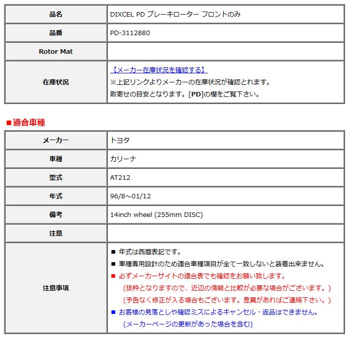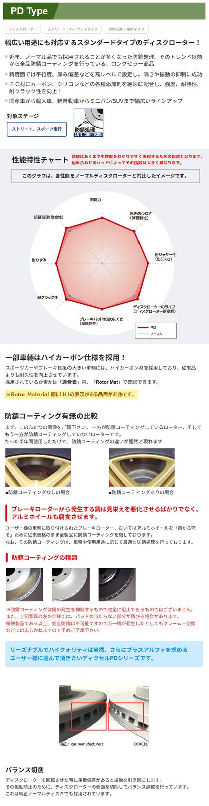品名:DIXCEL PD ブレーキローター フロントのみ